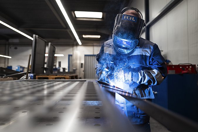 Dank zertifizierter Schweißkompetenz (DIN EN 1090-2 bis EXC2, DIN EN 1090-3 bis EXC3) und vielfältiger Oberflächenveredelungen (u.a. Pulverbeschichtung, Eloxal, Brünieren und Schliffe) fertigen wir robuste, montagefertige Komponenten in gleichbleibend hoher Qualität.